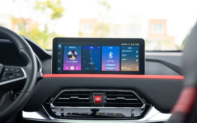 除了在外观设计上营造豪华感之外,这款思皓X8在内饰设计的细节上也是非常注重豪华感的表达,首先从中控面板用料来看,这款车采用了红黑相间且带有红色缝线点缀的软性材质包裹,触感舒适,其次从配置来看,三幅式的多功能方向盘采用平底设计,支持巡航,娱乐,语音互动等功能的控制,仪表盘部分则是简单的白色指针表盘,中央是3.5英寸行车电脑屏,这个价位还算是正常的配置。
