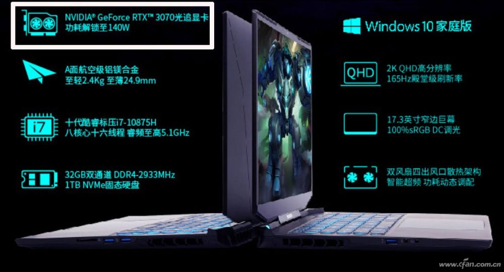 问题来了,NVIDIA此次并不强制要求OEM厂商必须标注显卡到底是Max-Q还是Max-P,所以我们只能从宣传页或参数列表中的功耗数据(如果有),或是网上相关评测才能知晓一款游戏本身上RTX 30 Laptop显卡的性能等级。