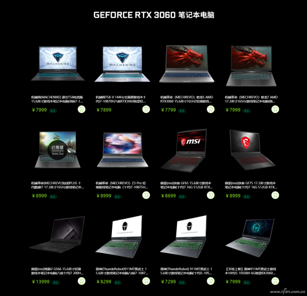 目前,首批上市的RTX 3060笔记本已有至少13款型号,它们涉及4个厂商,包括15.6英寸和17.3英寸两种典型尺寸,首发价格从最低6799元到13499元不等,感兴趣的童鞋可以关注一下。
