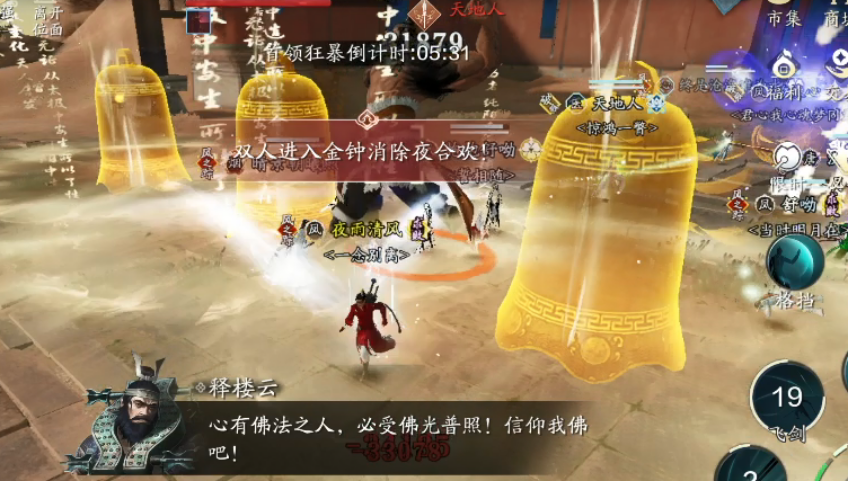 推荐T将释云楼拉至钟的附近,这样其他玩家就能及时找到钟进行Buff消除。同时一定要背向钟。因为释云楼的攻击如果波及到钟,那么会产生玉石俱焚的技能效果,对全队造成额外的伤害。