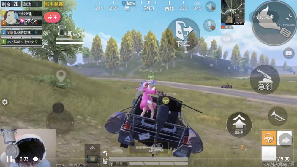 由于自己的火力车被打爆,王小歪当着百万观众的面,当起了伏地魔,刷新观众的认知。静静的观看远处的火力对决。