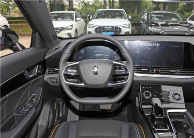 内饰部分,新车内饰主打科技感,功能区域偏向于驾驶位置,方便操作,双联屏造型也是很多高端车才会配备的,新车的仪表盘尺寸为7英寸,中控屏为12.3英寸,空调出风口则是贯穿式设计,控制区域并非常见的显示屏,上方有两个旋钮设计,搭配触摸操作,一起来完成对空调的控制,这样的设计看起来更时尚一些。方向盘为D型设计,两辐式造型稍罕见一些,上面也集成了不少功能按键,操作起来很方便。座椅采用的是运动座椅,对腰部支撑比较好,激烈驾驶时不至于太过颠簸。