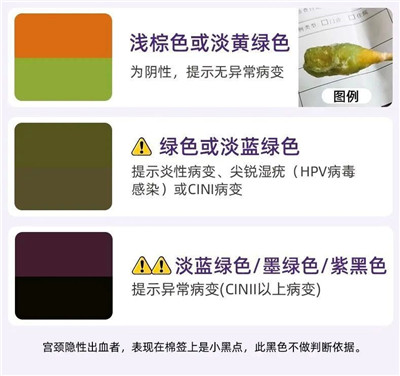 如果棉签无变色或淡绿色,则表明无病变细胞;如果棉签变为蓝色、墨绿色或黑色,则提示可能有异常病变,需要进一步检测。