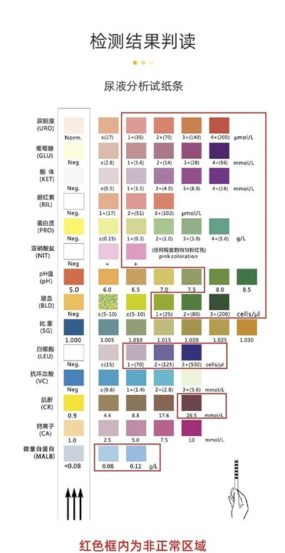 我们今天要讲的尿常规试纸据说可以检测14项指标,操作方法也很简单,就是用自带尿杯取中段尿半杯,将试纸上的测试区完全浸泡在尿液里,取出后静置1分钟,对比色卡颜色判断尿液是否健康。