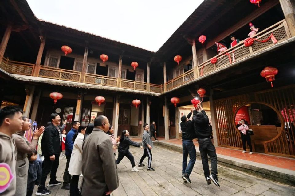 之后新郎背着新娘来到铺前土楼抛绣球、唱山歌……各种畲族婚嫁礼仪令人耳目一新,大家纷纷掏出手机,为这对新娘送上祝福。畲族的婚嫁礼仪,不仅仅是一种仪式,更是一种情感的交流和文化的传承。在这个特殊的时刻,新郎新娘通过绣球、山歌等传统方式,表达了对彼此的爱意,也向大家展示了畲族独特的文化魅力。