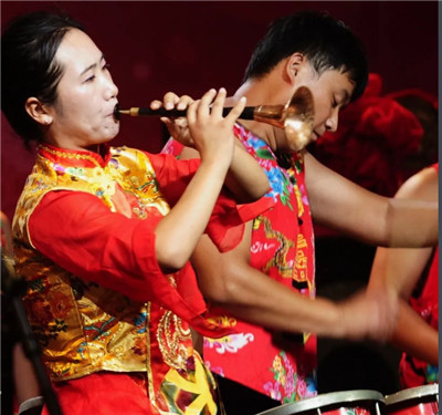 演奏风格:鲁西南鼓吹乐唢呐、锡笛常用的演奏技巧有花舌音、气控音、气拱音、滑音、打音、泛音、萧音、苦音等。
